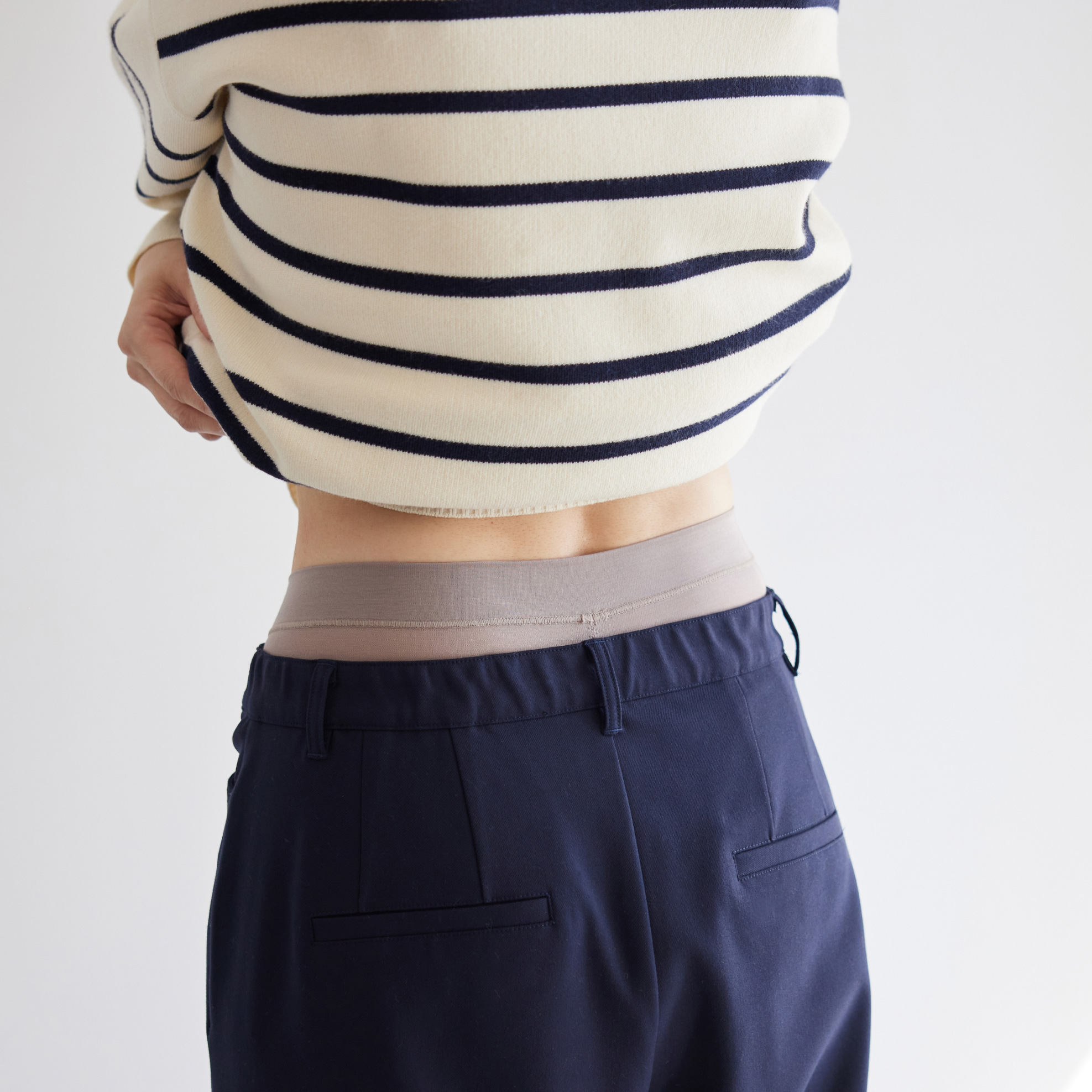 ウエストや足口にはゴムではなく伸縮性に優れた素材を使用しているため、締め付け感はありません。